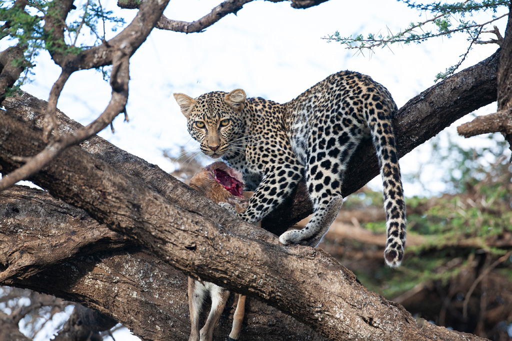 Tanzania - click on an image for enlarged view and to scroll through Olive Baboon Young Olive Baboon Wildlife at Lake Manyara Masai Giraffe Abdim’s Stork Adult Ostrich with young African Elephant in the bush Bat eared Fox Cheetah scanning the plains Cheetah cub practising aggression Cheetah cub Grey-headed Kingfisher Leopard descending from tree Lions guarding Zebra kill Leopard with Antelope carcass Lioness pack at Ndutu Vultures surround a zebra carcass Male Cliff Chat Ndutu plains Tanzania Ostrich displaying Young Ostriches Plain’s Zebra Weaver bird and nest next page home